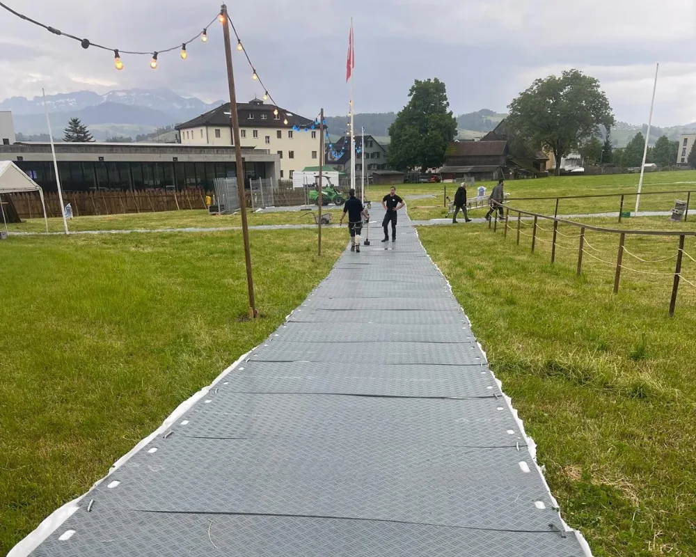 Ground Protect® 20,5EP ProMaximum ist die ideale Lösung für Events mit hoher Belastung: Ob temporäre Zufahrten, mobile Bühnen oder große Aufbauten – diese Platte schützt empfindliche Untergründe bei gleichzeitig maximaler Tragkraft. Das glatte Event-Profil kombiniert Funktionalität mit professionellem Auftritt.