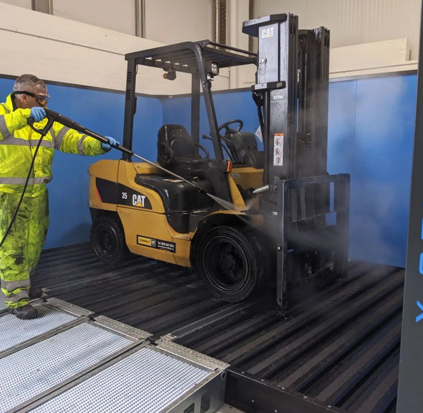 Die GP Wash-Box 3 ist mit 3950 × 4950 mm Innenabmessung und 1720 kg Gesamtgewicht die größte Ausführung. Sie bietet maximale Effizienz für schwere Baumaschinen, LKWs und Nutzfahrzeuge – mit automatischer Wasseraufbereitung und robuster Stahlkonstruktion.